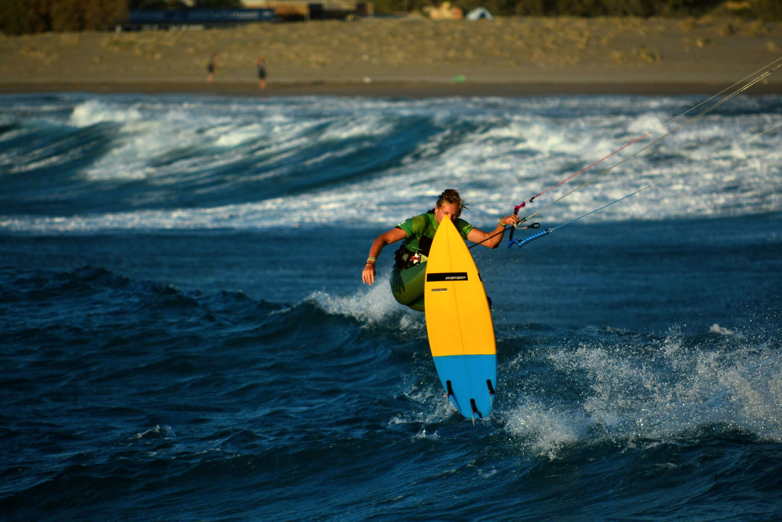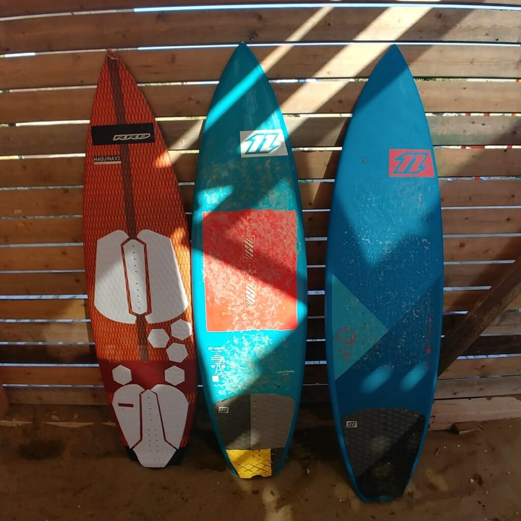 Do tego deski o bardziej prostokątnym kształcie zazwyczaj mają mniejszy rocker (rocker to krzywizna deski od dzioby do rufy). Deski płaskie w przeciwieństwie do tych z podwiniętymi końcami łatwiej wchodzą w ślizg i osiągają wyższe prędkości. Odczucia związane z pływaniem na deskach o małym rockerze są bliskie do tych znanych z jazdy na twin-tipie. Dzięki temu przesiadka na deskę wave’ową będzie płynna, a nowe doświadczenia nie będą tak odległe od tego co do tej pory już znasz.